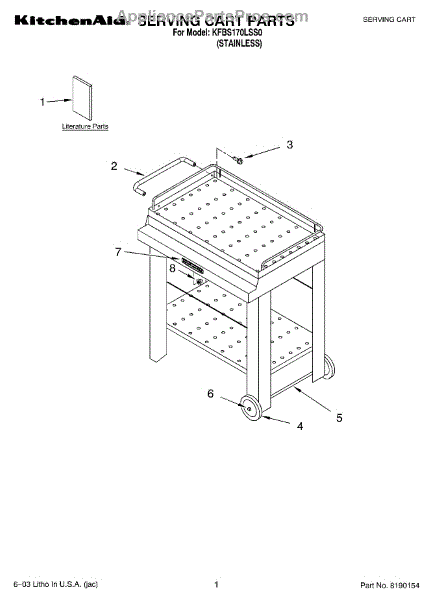 Parts for Whirlpool KFBS170LSS0: 01 - Serving Cart Parts