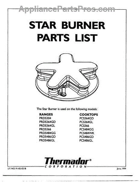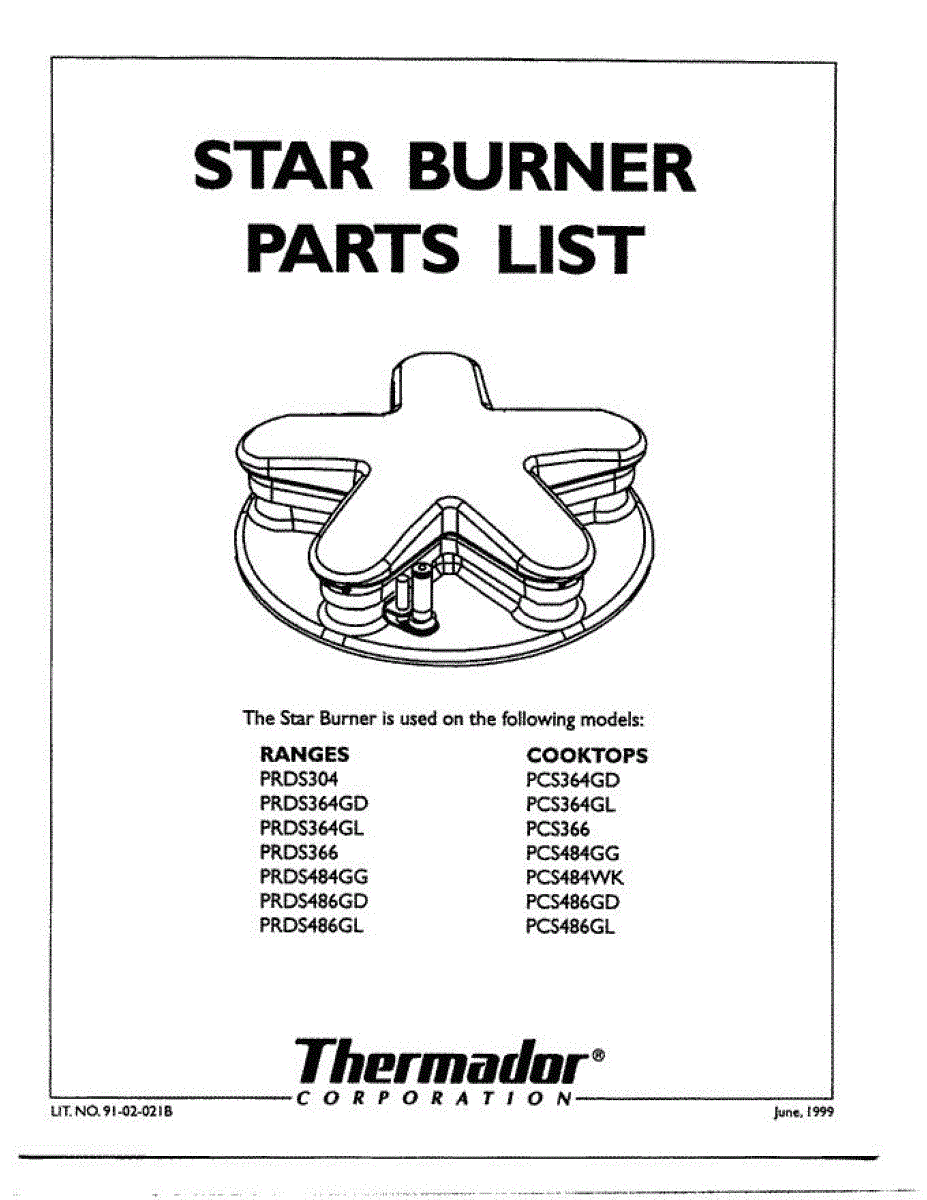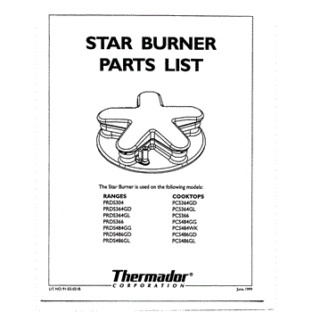 Parts for Thermador PRDS484GL: 01 - Star Burner Parts