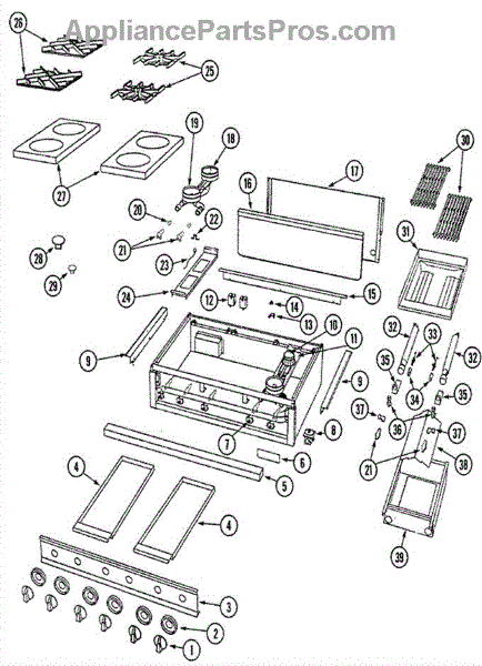 Parts for Jade RJCT3673A: 01 - Top Assembly / Gas Controls Parts