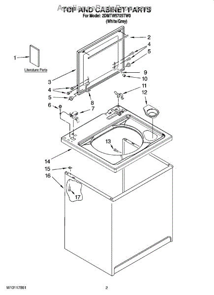 Parts for Maytag 2DMTW5705TW0: 01 - Top And Cabinet Parts
