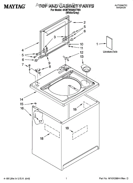 Parts for Maytag 4KMTW5955TW0: 01 - Top And Cabinet Parts