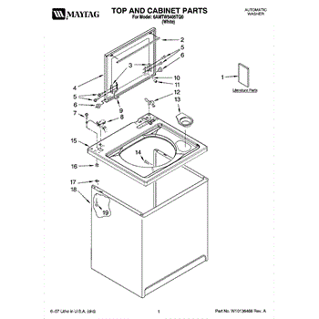 The Washer Lid Screw is an OEM part for Whirlpool washing machines. This 6-32 x .340 screw secures the washer lid to the hinge assembly, ensuring the lid opens and closes smoothly and stays securely in place during operation.