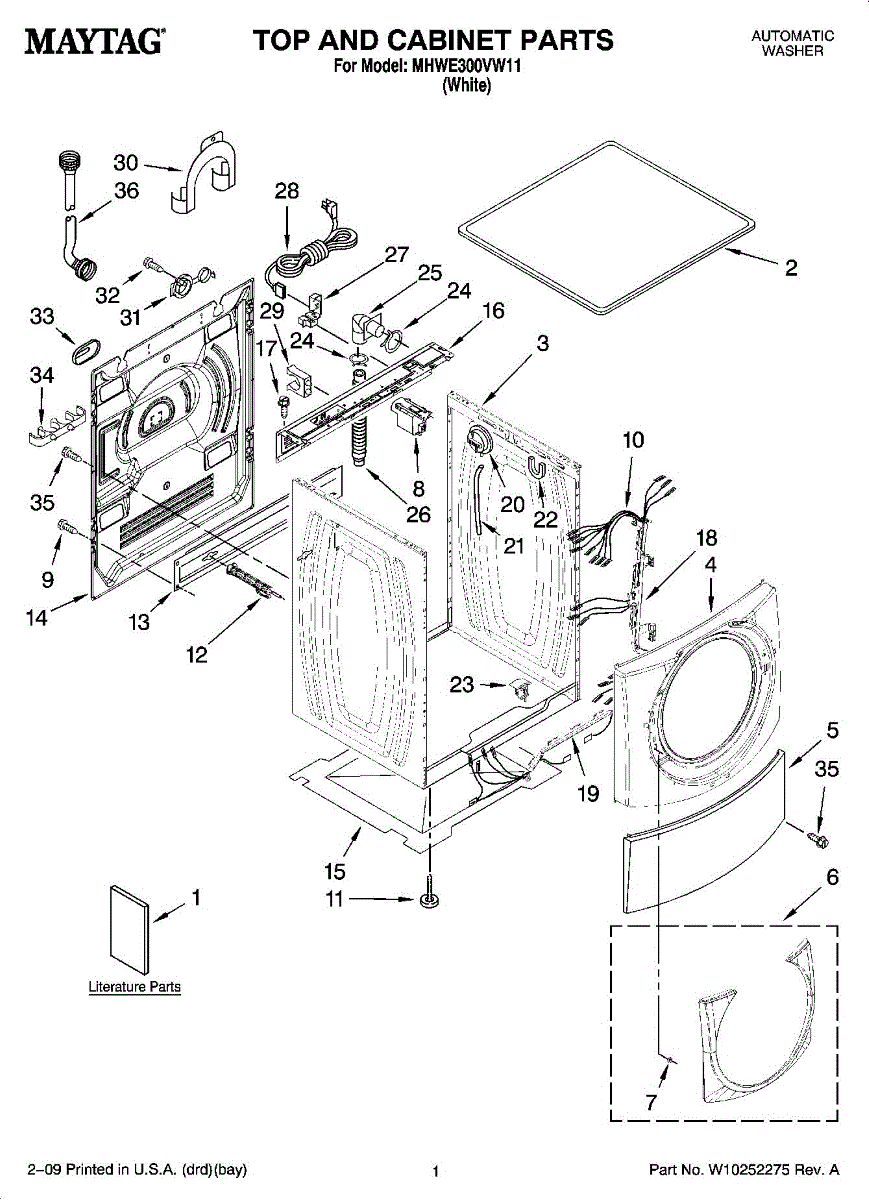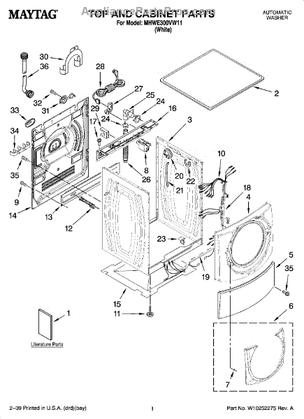 This outer drain hose routes wastewater from your washer to the household standpipe or sink. Replacing a cracked, kinked, or clogged hose restores proper draining and helps reduce leaks at the back of the appliance.