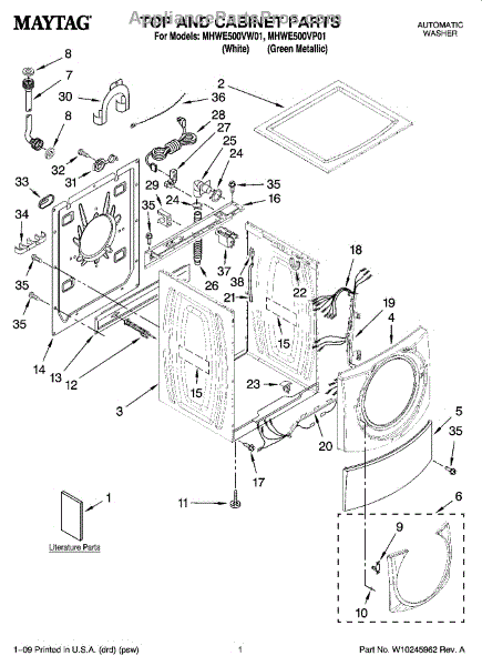 Parts for Maytag MHWE500VP01: 01 - Top And Cabinet Parts