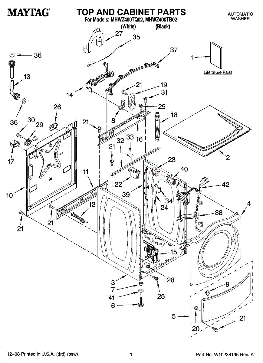 Parts for Maytag MHWZ400TB02: 01 - Top And Cabinet Parts