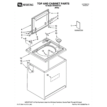 Parts for Maytag MTW5630TQ1: 01 - Top And Cabinet Parts