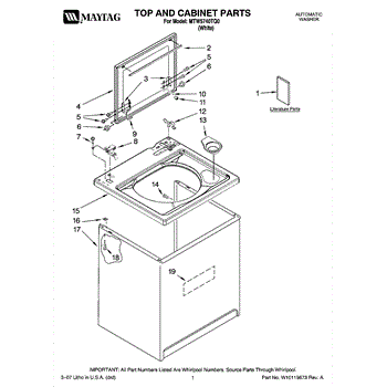 The Washer Lid Screw is an OEM part for Whirlpool washing machines. This 6-32 x .340 screw secures the washer lid to the hinge assembly, ensuring the lid opens and closes smoothly and stays securely in place during operation.