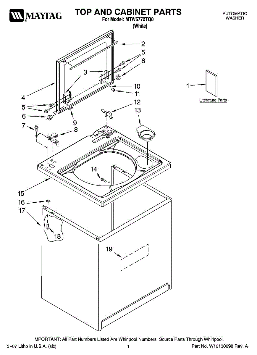 Parts for Maytag MTW5770TQ0: 01 - Top And Cabinet Parts