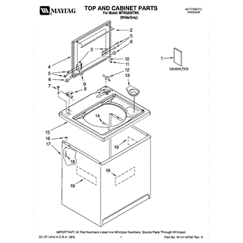 Parts for Maytag MTW5800TW0: 01 - Top And Cabinet Parts