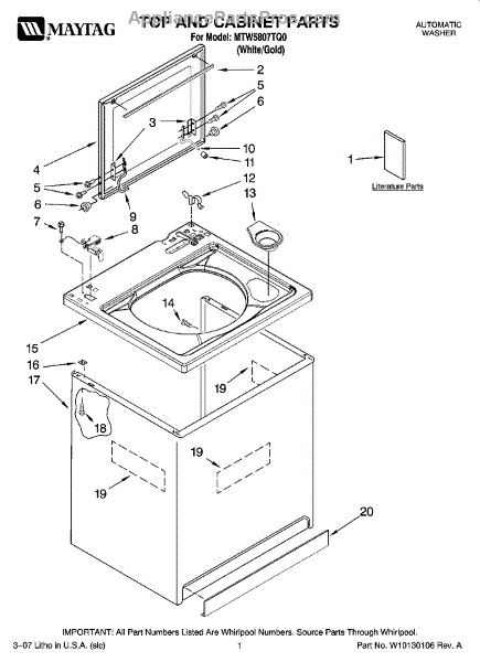 Parts for Maytag MTW5807TQ0: 01 - Top And Cabinet Parts