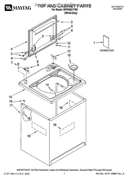 The Whirlpool spacer is an OEM replacement part responsible for maintaining the proper spacing and alignment between the washer cabinet and the top panel. The spacer provides stability and support to the appliance. It ensures that the top panel is securely attached and evenly distributed, preventing any misalignment or instability during operation.
