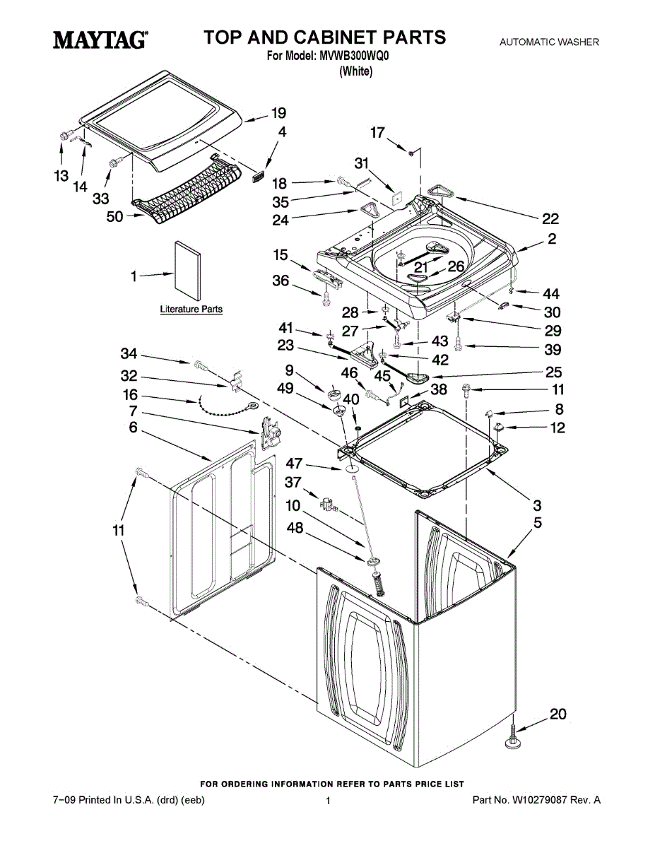 Parts for Maytag MVWB300WQ0: 01 - Top And Cabinet Parts