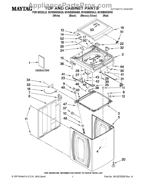 Parts for Maytag MVWB850WQ0: 01 - Top And Cabinet Parts