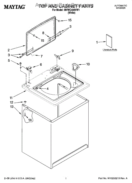 Parts for Maytag MVWC400VW1: 01 - Top And Cabinet Parts