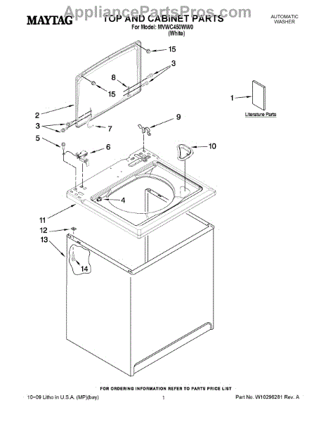 Parts for Maytag MVWC450WW0: 01 - Top And Cabinet Parts