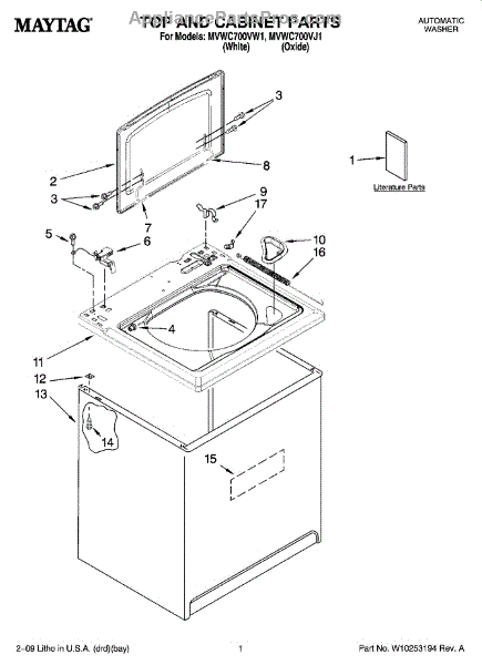 Parts for Maytag MVWC700VW1: 01 - Top And Cabinet Parts
