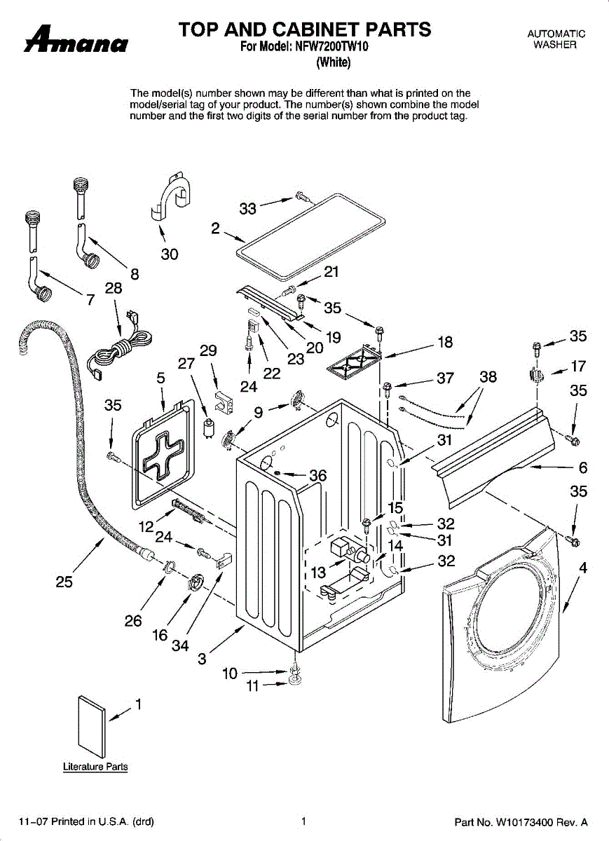 Includes one bolt for moving a front load washer