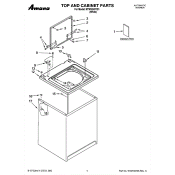 The Washer Lid Screw is an OEM part for Whirlpool washing machines. This 6-32 x .340 screw secures the washer lid to the hinge assembly, ensuring the lid opens and closes smoothly and stays securely in place during operation.