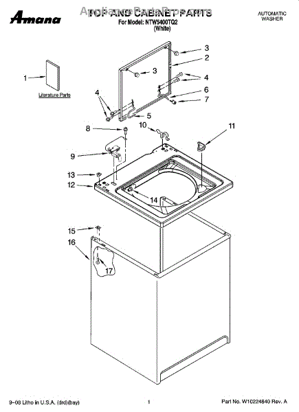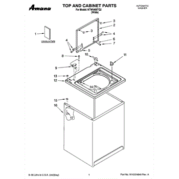 Parts for Maytag NTW5400TQ2: 01 - Top And Cabinet Parts
