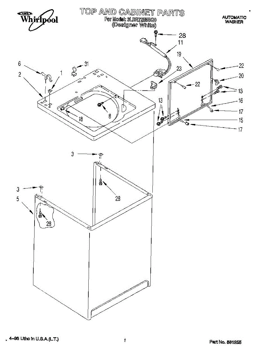 Repair manual for top loading automatic direct drive washing machines made by Whirlpool. Covered brands include Whirlpool, Sears, Kenmore, Kitchen Aid, Roper, and Estate. Easy to follow photographs and step-by-step repair procedures.