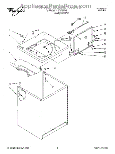 Used to lock washer cabinet to rear wall of washer.