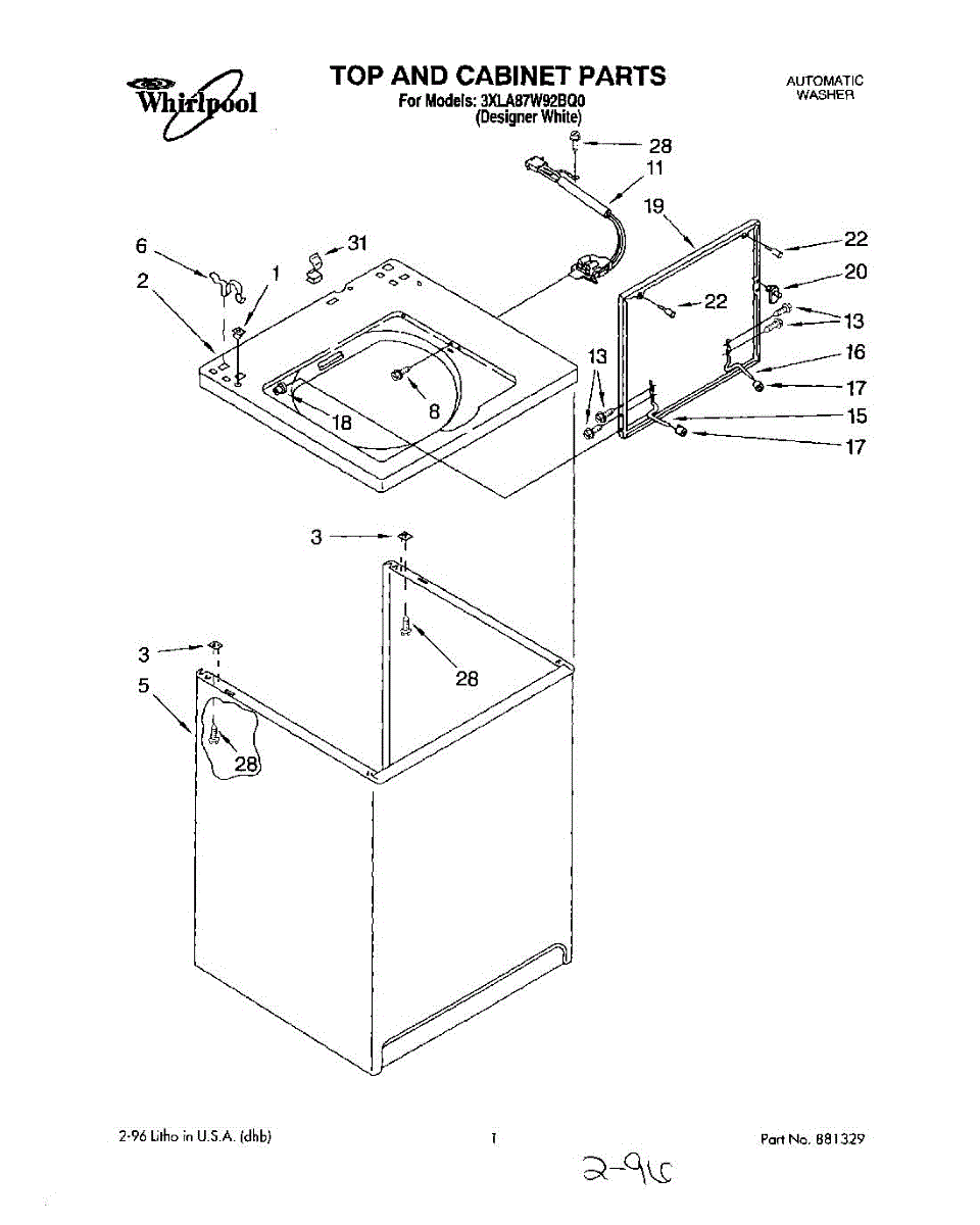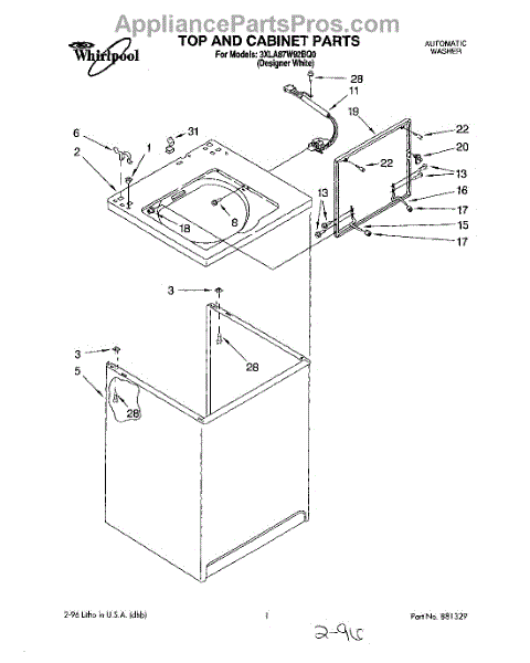 Used to lock washer cabinet to rear wall of washer.