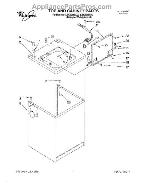Almond. Lid includes two bumpers part number WP9724509