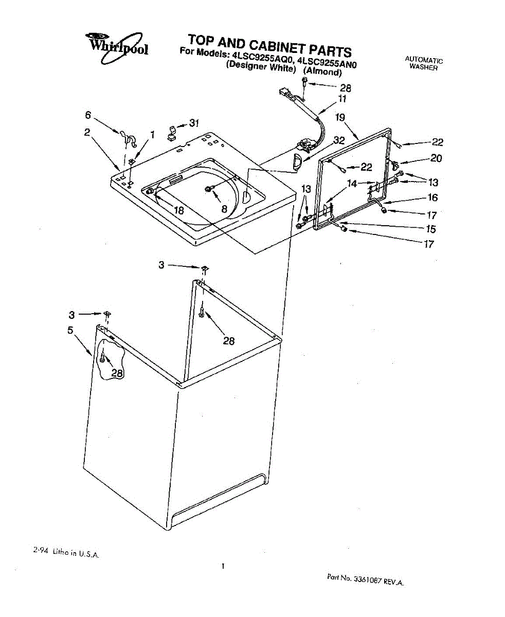 Parts for Whirlpool 4LSC9255AQ0: 01 - Top And Cabinet, Lit / Optional Parts