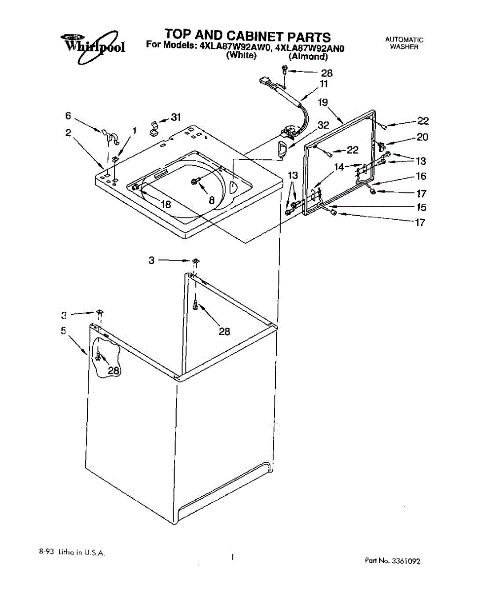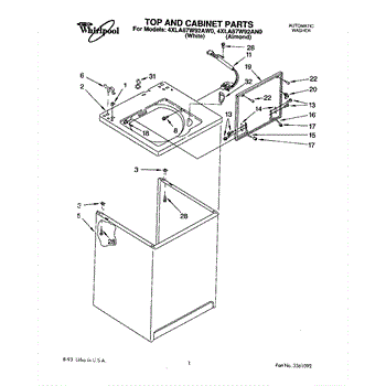 Parts for Whirlpool 4XLA87W92AN0: 01 - Top And Cabinet, Literature And Opt Parts