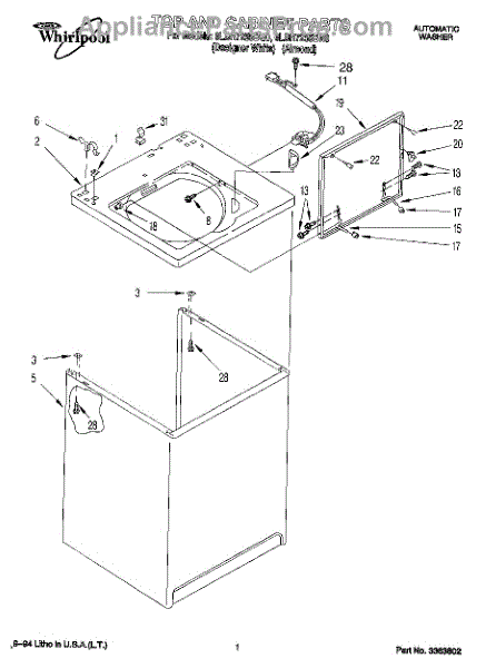 Repair manual for top loading automatic direct drive washing machines made by Whirlpool. Covered brands include Whirlpool, Sears, Kenmore, Kitchen Aid, Roper, and Estate. Easy to follow photographs and step-by-step repair procedures.