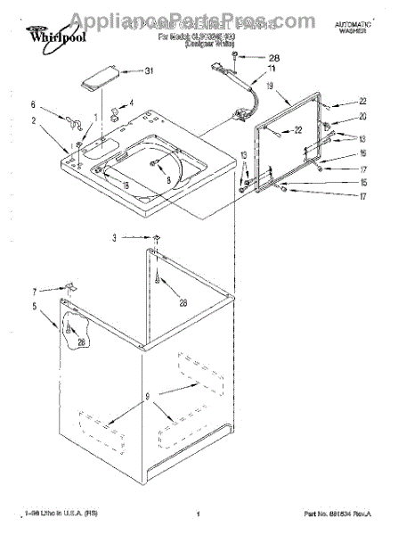 The Washer Lid Screw is an OEM part for Whirlpool washing machines. This 6-32 x .340 screw secures the washer lid to the hinge assembly, ensuring the lid opens and closes smoothly and stays securely in place during operation.