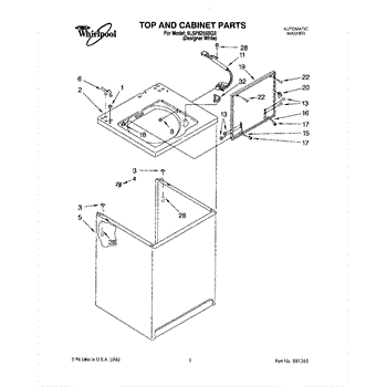 The Washer Lid Screw is an OEM part for Whirlpool washing machines. This 6-32 x .340 screw secures the washer lid to the hinge assembly, ensuring the lid opens and closes smoothly and stays securely in place during operation.