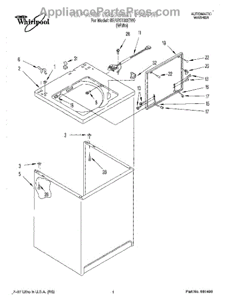 Parts for Whirlpool 6RAB5132EW0: 01 - Top And Cabinet Parts
