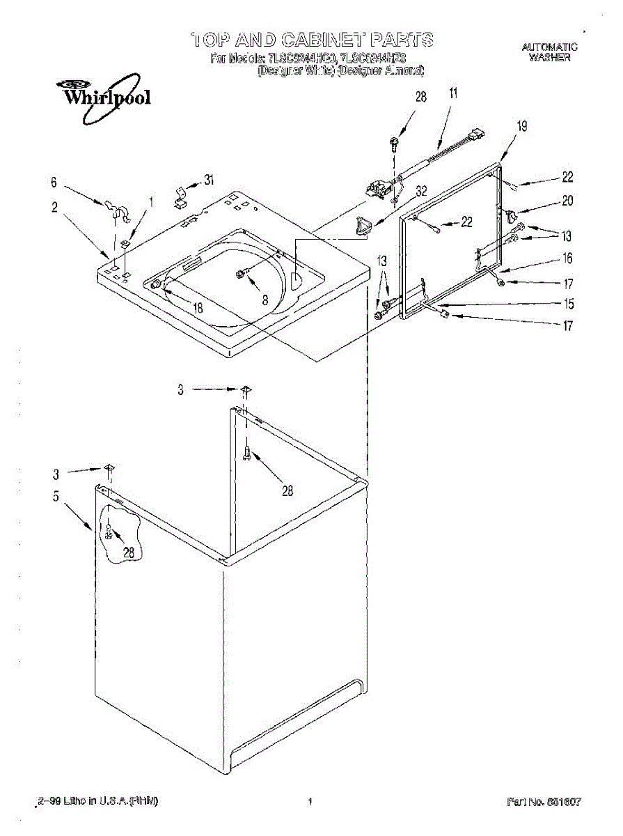 Parts for Whirlpool 7LSC8244HQ0: 01 - Top And Cabinet Parts
