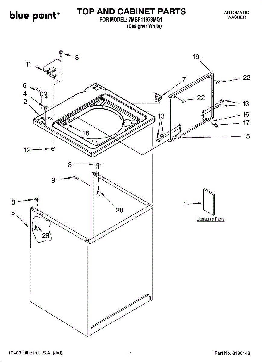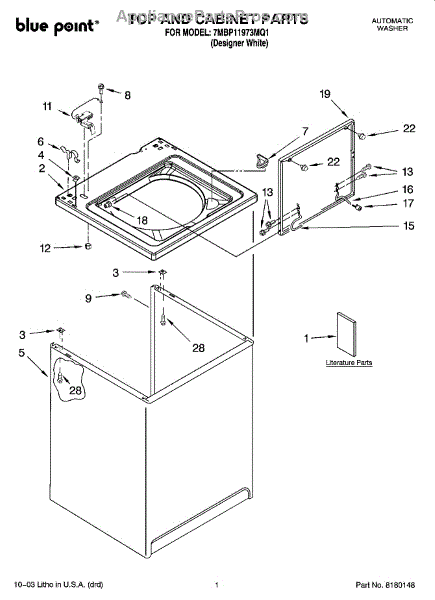 Parts for Whirlpool 7MBP11973MQ1: 01 - Top And Cabinet Parts