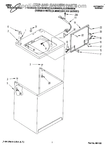Repair manual for top loading automatic direct drive washing machines made by Whirlpool. Covered brands include Whirlpool, Sears, Kenmore, Kitchen Aid, Roper, and Estate. Easy to follow photographs and step-by-step repair procedures.