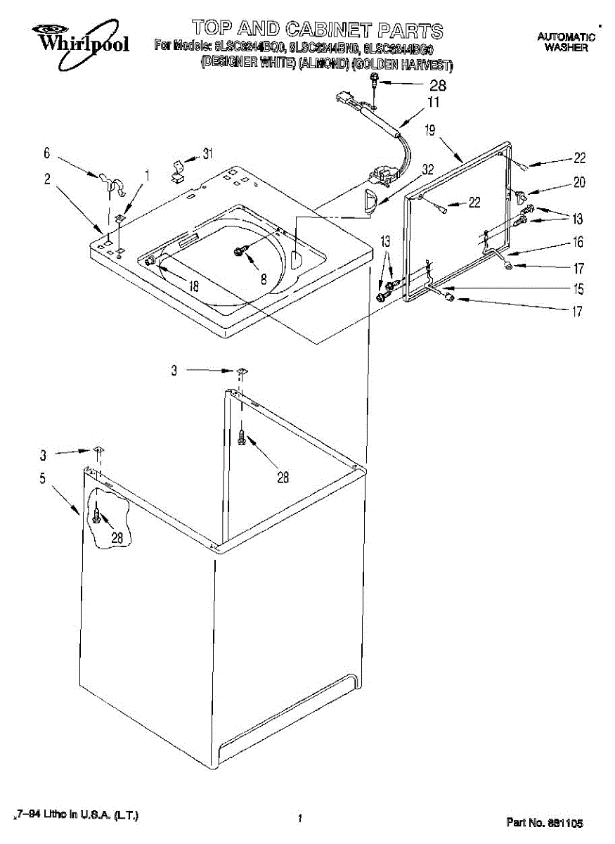 Repair manual for top loading automatic direct drive washing machines made by Whirlpool. Covered brands include Whirlpool, Sears, Kenmore, Kitchen Aid, Roper, and Estate. Easy to follow photographs and step-by-step repair procedures.