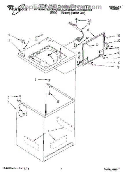 Parts for Whirlpool 8LSC8245AW1: 01 - Top And Cabinet, Lit / Optional Parts