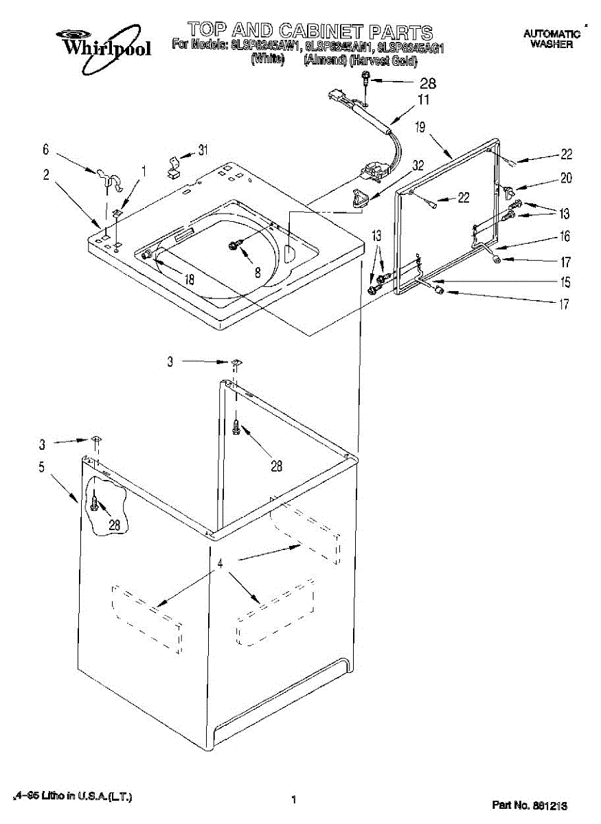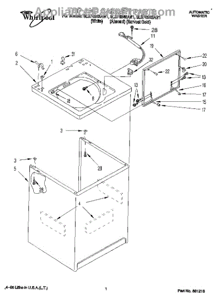 Repair manual for top loading automatic direct drive washing machines made by Whirlpool. Covered brands include Whirlpool, Sears, Kenmore, Kitchen Aid, Roper, and Estate. Easy to follow photographs and step-by-step repair procedures.