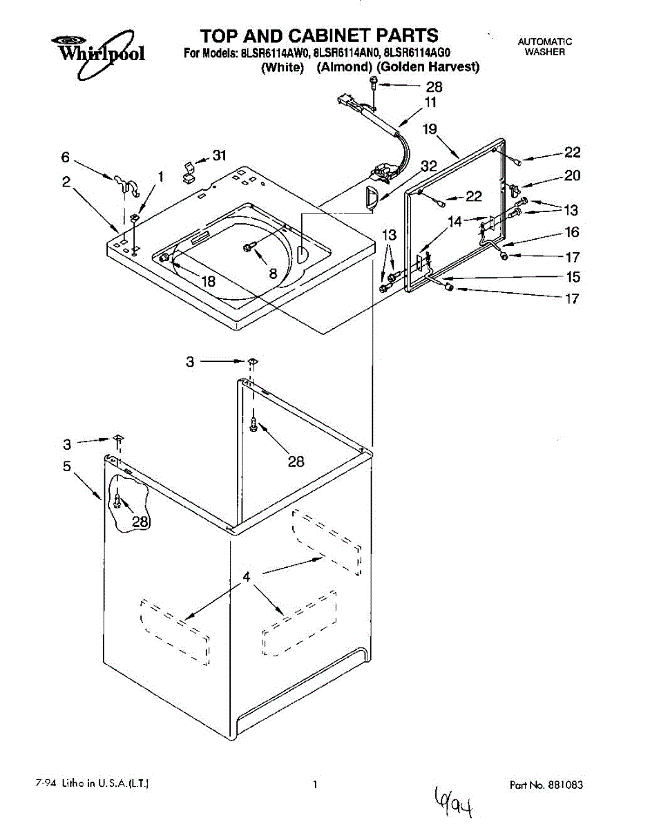 Repair manual for top loading automatic direct drive washing machines made by Whirlpool. Covered brands include Whirlpool, Sears, Kenmore, Kitchen Aid, Roper, and Estate. Easy to follow photographs and step-by-step repair procedures.