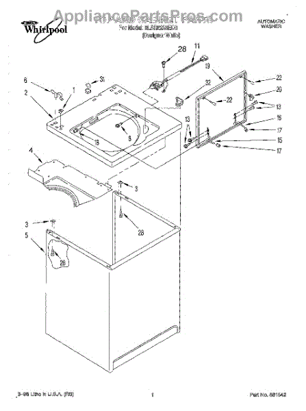 Parts for Whirlpool 8LSR6233EQ0: 01 - Top And Cabinet Parts