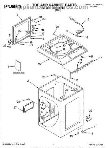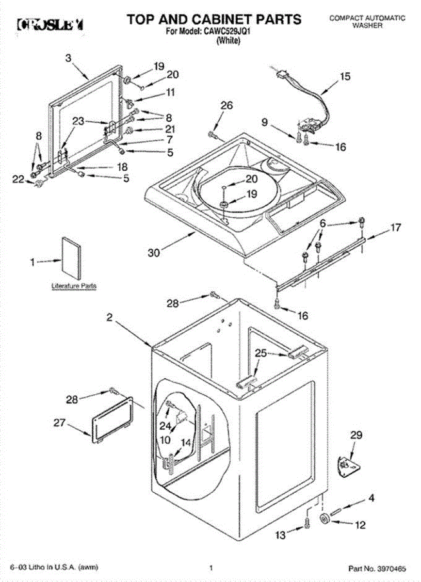 The Washer Lid Screw is an OEM part for Whirlpool washing machines. This 6-32 x .340 screw secures the washer lid to the hinge assembly, ensuring the lid opens and closes smoothly and stays securely in place during operation.