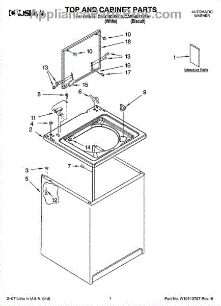 Right hand side. For screws use WPW10119828.