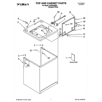The Washer Lid Screw is an OEM part for Whirlpool washing machines. This 6-32 x .340 screw secures the washer lid to the hinge assembly, ensuring the lid opens and closes smoothly and stays securely in place during operation.