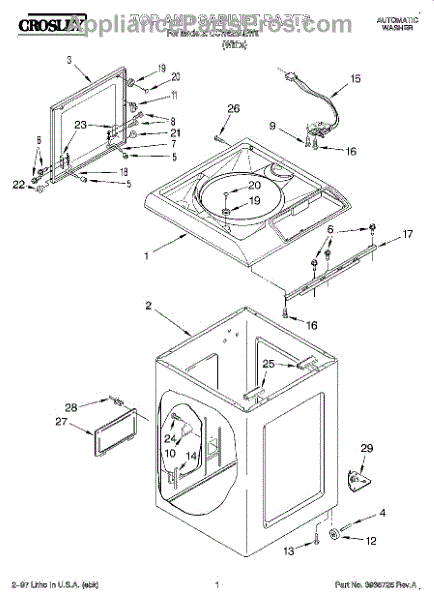 The Washer Lid Screw is an OEM part for Whirlpool washing machines. This 6-32 x .340 screw secures the washer lid to the hinge assembly, ensuring the lid opens and closes smoothly and stays securely in place during operation.