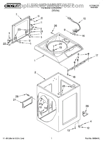 Parts for Whirlpool CCW5264W3: 01 - Top And Cabinet Parts
