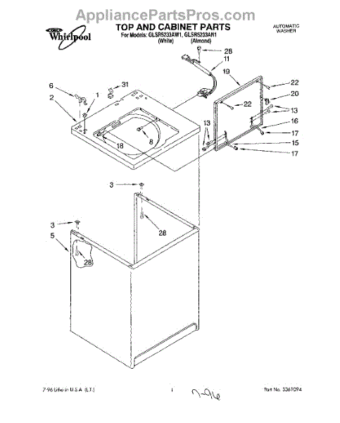 Parts for Whirlpool GLSR5233AW1: 01 - Top And Cabinet, Lit / Optional Parts