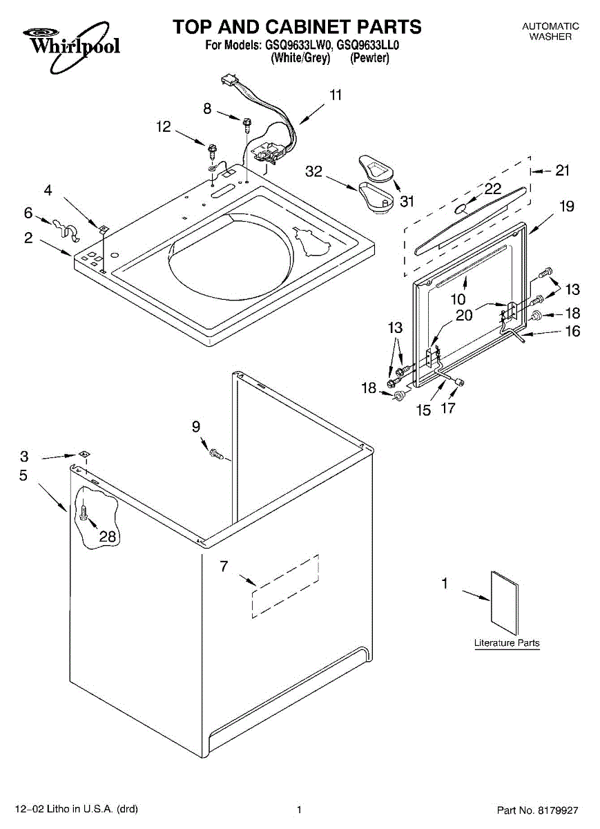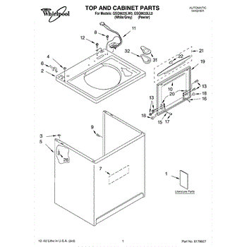 Repair manual for top loading automatic direct drive washing machines made by Whirlpool. Covered brands include Whirlpool, Sears, Kenmore, Kitchen Aid, Roper, and Estate. Easy to follow photographs and step-by-step repair procedures.