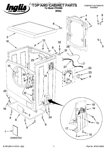 This factory screw secures appliance components to their mounting points. Replace missing, worn, or stripped hardware to restore a tight fit, proper alignment, and quieter operation across the affected assembly.