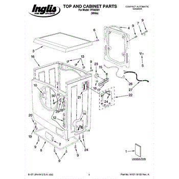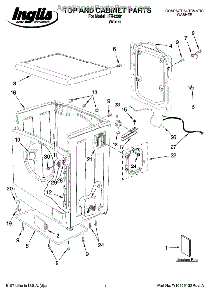 This factory screw secures appliance components to their mounting points. Replace missing, worn, or stripped hardware to restore a tight fit, proper alignment, and quieter operation across the affected assembly.